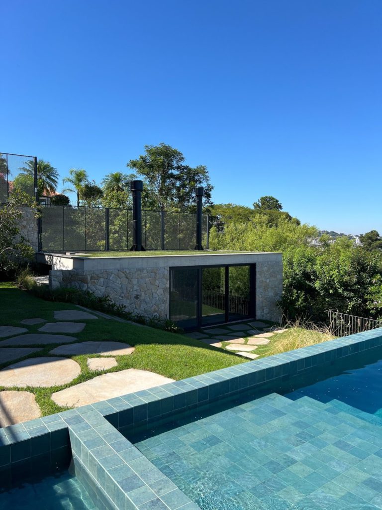 O telhado verde, instalado pela Ecotelhado, desempenha um papel importante na drenagem urbana, ajudando a absorver a água da chuva e reduzir a necessidade de climatização artificial. Além de melhorar o isolamento térmico, o telhado verde contribui para o equilíbrio hídrico e estético da residência, integrando-se perfeitamente ao paisagismo ao redor.